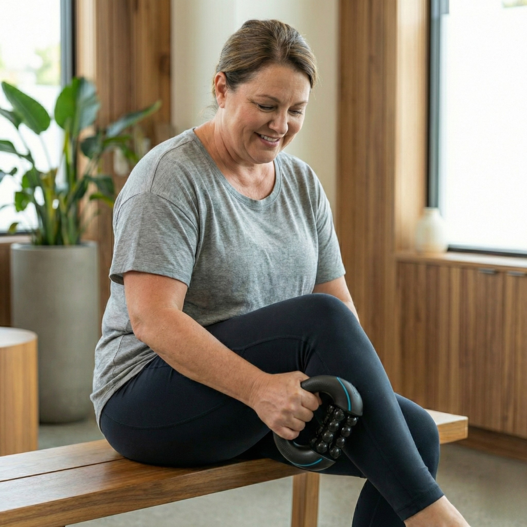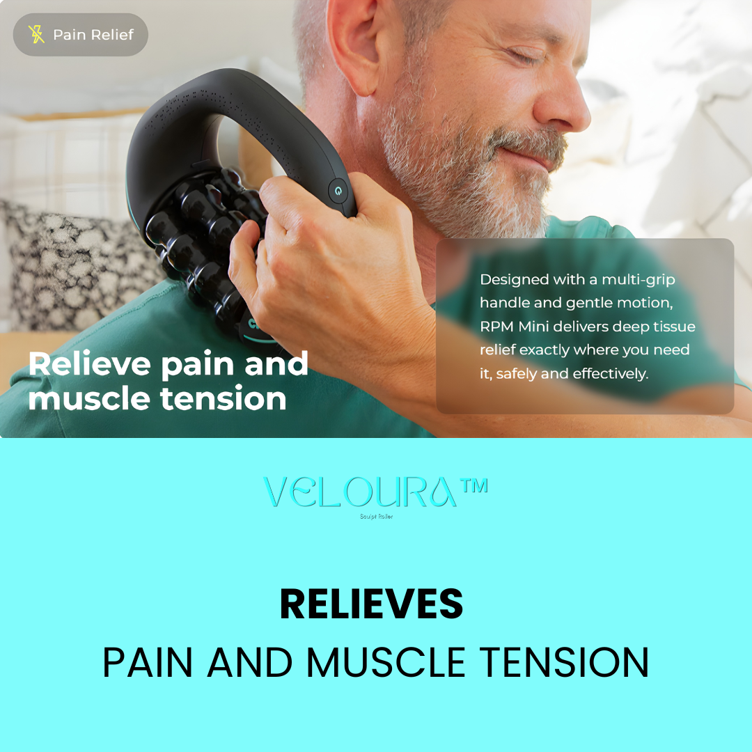 โข Deep-pressure motorized rollers โข Three speed settings โข USB-C rechargeable โข Lightweight, travel-ready design